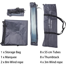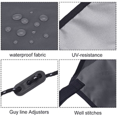 Markisen er laget av slitesterkt Oxford-stoff av høy kvalitet. Produsert med kraftige metallbeslag og robuste bardun