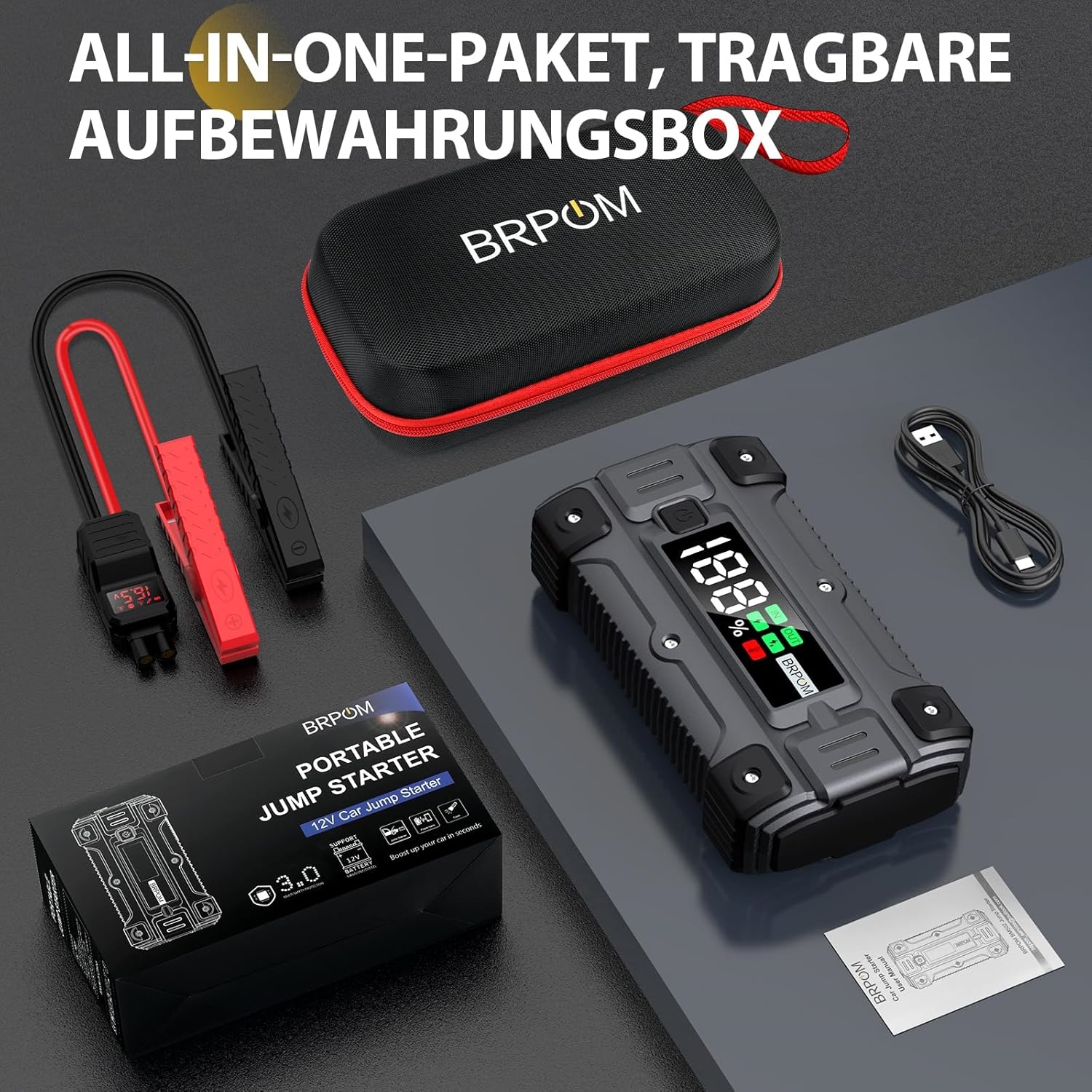 • Inkludert: Jump starter, oppgradert kabel, ladekabel og oppbevaringspose