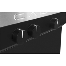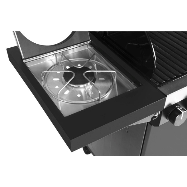 Gassgrill har 2 brennere i rustfritt stål og 1 kokeplate, alle med automatisk piezotenning.