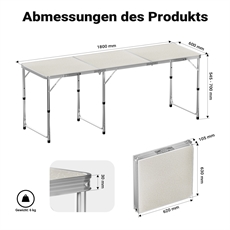 Bordet kan belastet med 30 kg, og kan justeres på alle 4 ben.
