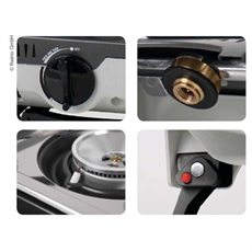 Gass kokebluss med brettbare føtter og tenningssikring.
