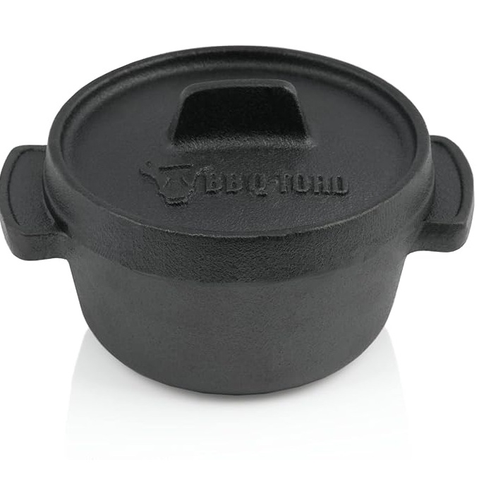 Denne støpejernsgryten fra BBQ Toro regulerer ujevn varme, slik at du får jevn matlaging hver gang. Den er allerede innbrent og klar til bruk, noe som sparer deg tid. Gryten er ideell til matlaging, steking og baking, og du kan bruke den på bål, grill eller i ovnen. Med en diameter på 13,5 cm inkludert håndtak er den praktisk til mindre porsjoner og individuell servering.