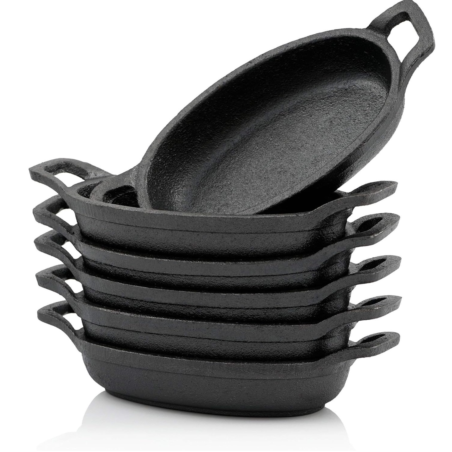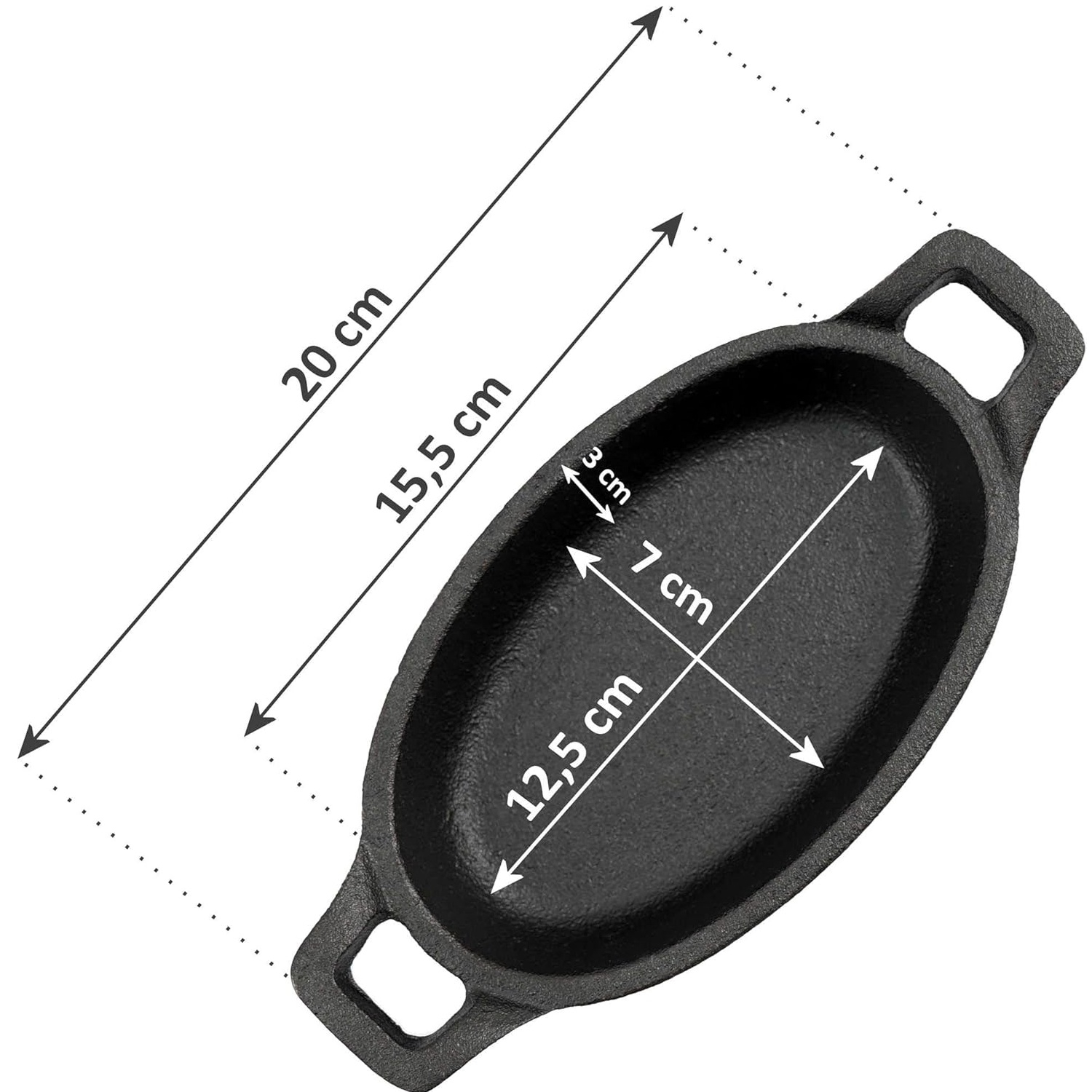 Denne støpejernspannen er termoresistent og kan brukes i ovn og grill, noe som gir deg fleksibilitet til forskjellige matlagingsmetoder. Støpejernet sikrer jevn varmefordeling, slik at dine daglige måltider tilberedes ensartet. Du kan til og med bruke pannen direkte på ild eller glør, noe som gjør den ideell til camping og piknik. Den ovale formen med to håndtak gir sikker håndtering under både tilberedning og servering.