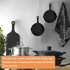 Denne serveringspannen er laget av høykvalitets støpejern, som gir utmerket varmeoppbevaring og sikrer jevn tilberedning. Med en diameter på 10 cm er den designet for enkel porsjoner – stek ett egg eller en liten pølse raskt til frokost. Pannen fungerer på induksjonskomfyrer, elektriske ovner og gasskomfyrer, så den passer til ditt kjøkken uansett komfyrtype.