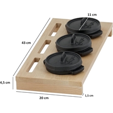 • Inkludert i pakken: 3 minibrytere, 3 lokk, trebakke