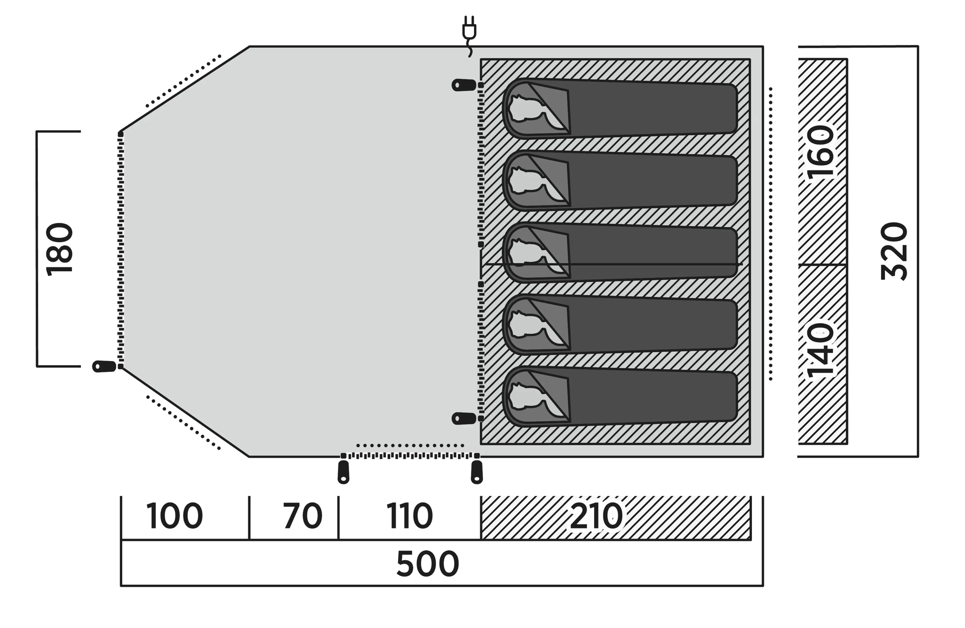 • Ekstra: Klar for strømkabelgjennomføring i teltsiden