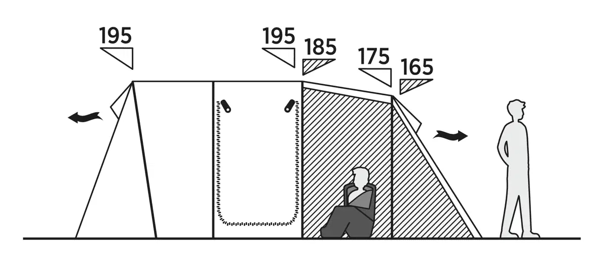 Når fem personer skal dele telt, oppstår behovet for både fellesrom og privatliv. På en familiehelg vil foreldre og barn ha forskjellige søvnrytmer. På festivaler kan gruppen ha behov for å skifte klær eller hvile uten å forstyrre hverandre. Teltet løser dette med to soverom adskilt av en avtagbar skillevegg og et separat oppholdsrom med ståhøyde, slik at man kan bevege seg uten å krype rundt.