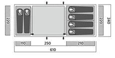• Dimensjoner 610 cm lengde 240 cm bredde 195 cm høyde
