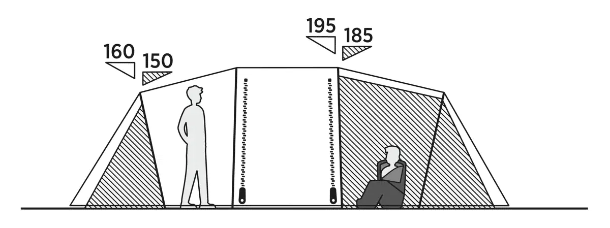 Stengene er fargekodet, hvilket gjør det mulig å identifisere hvilke stenger som hører til hvilke ermer. Dette systemet minimerer den tiden som brukes på oppsett, og maksimerer tiden til hygge og ferie, selv for de uten tidligere telterfaring. Stengene er laget av EnduraFlex-glassfiber på 11 mm, som gir fleksibilitet og stabilitet under utfordrende værforhold. De 38 inkluderte pluggene sikrer at teltet kan festes ordentlig på ulike underlag. Systemet reduserer frustrasjonen ved ankomsten til campingplassen, slik at familien kan komme i gang med å nyte naturen raskere. Den gjennomtenkte konstruksjonen gjør teltet tilgjengelig for alle, uansett om det er første campingtur eller en av mange.