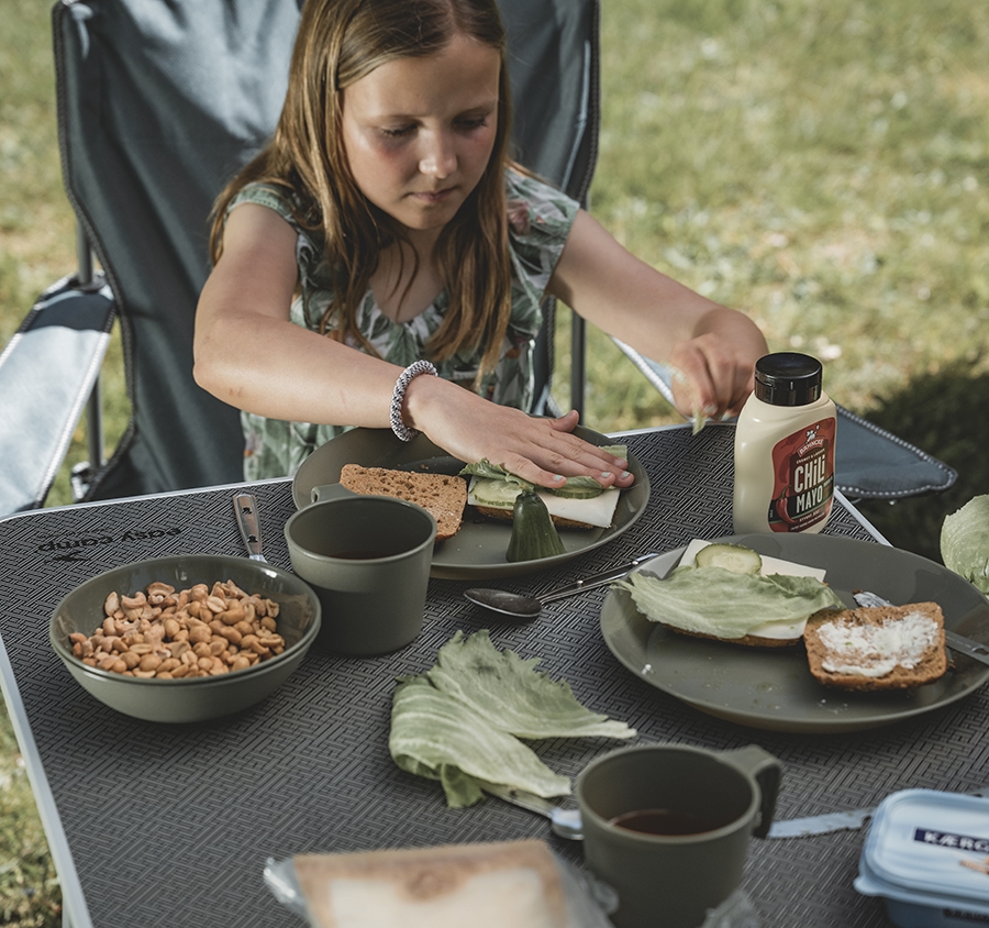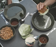 Hvis du planlegger fotturer eller trekking, er dette servisesettet designet for å gjøre pakking lettere. Stablefunksjonen reduserer pakkestørrelsen, noe som er kritisk når plassen i ryggsekken er begrenset – du kan pakke mer effektivt og spare plass til annet viktig utstyr. Med en totalvekt på 390 g er settet lett å bære over lange avstander og sparer energi. Settet inkluderer alt nødvendig for to personer: 2 kopper med håndtak, 2 skåler og 2 tallerkener, alle laget av holdbar polypropylen.