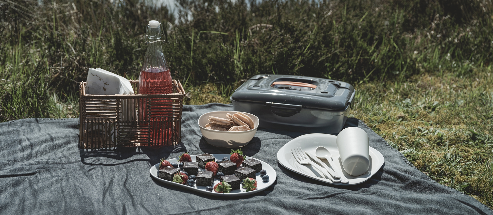 • Inkludert: 1 picnic box, 4 tallerkener, 4 krus, 4 boller, 4 gafler, 4 kniver, 4 skjeer