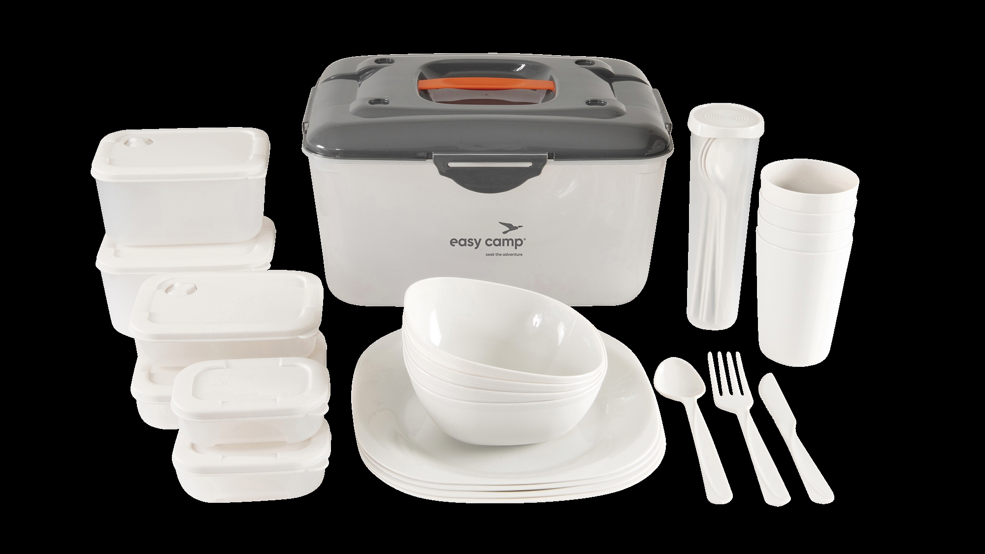 Easy Camp leverer praktiske løsninger for utendørs aktiviteter. Med dette settet får du alt nødvendig servise samlet på ett sted, noe som sparer deg for å lete etter manglende deler. De seks oppbevaringsboksene gjør det enkelt å pakke forskjellige typer mat, og den kompakte størrelsen sikrer at settet ikke tar unødvendig plass i ditt campingutstyr. Finn flere camping- og picnicløsninger i vårt sortiment.