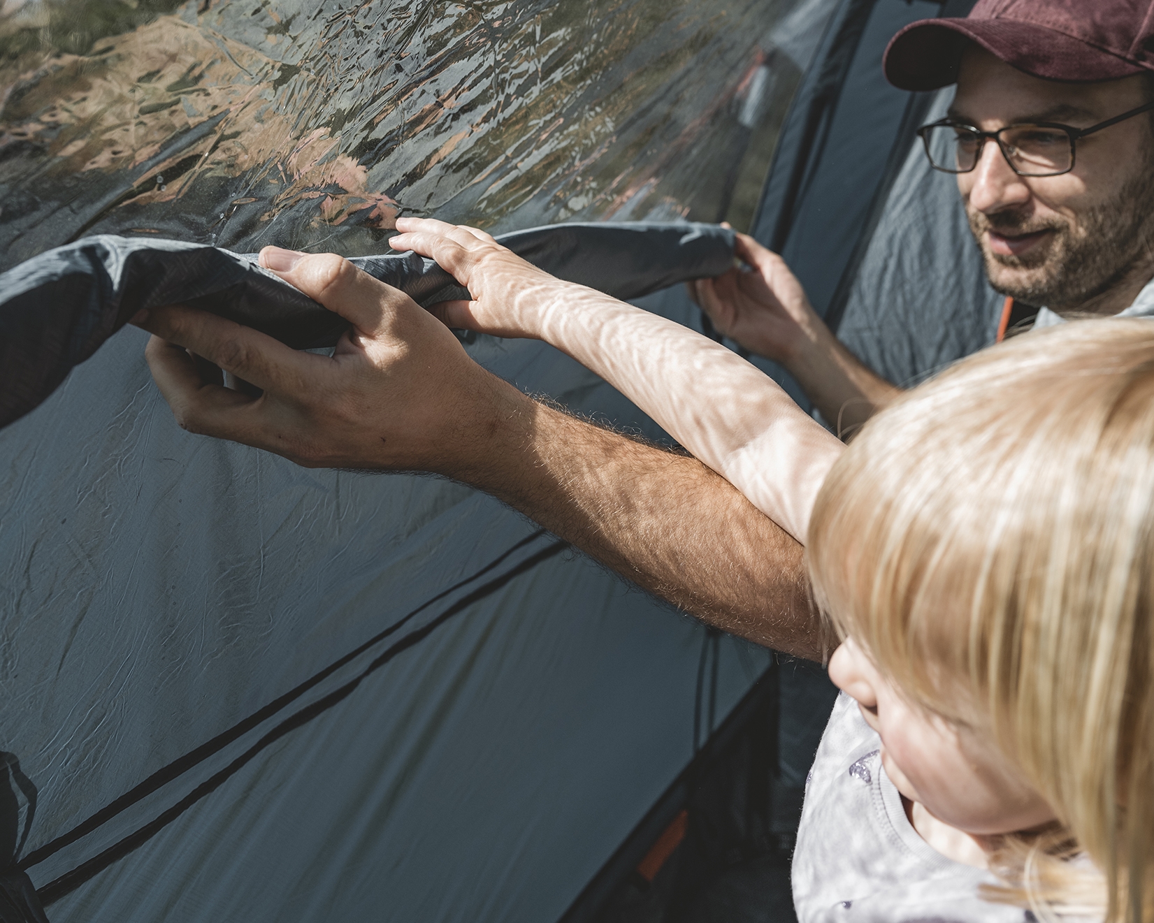 Easy Camp - Sola 6 Familietelt kombinerer effektiv romfordeling med pålitelig værbeskyttelse for familiecamping og festivaler. Tunnelstrukturen med flere seksjoner gir stabilitet og romslighet, mens tre separate soveavlukker sikrer privatliv for opptil seks personer. Vannsøyletrykket på 3000 mm med tapede sømmer holder teltet tørt, selv under vedvarende regn. WeatherGuard 3000 flysheet i 190T polyester er PU-belagt og flammehemmende, noe som bidrar til beskyttelse mot elementene. Oppsettstiden på 12 minutter til innflytting betyr mindre stress ved ankomst til campingplassen. Den dobbeltbelagte bunnen i vanntett polyetylen holder fukt ute, mens det pustende inneteltet i polyester i soveavdelingene forebygger kondensdannelse. Teltet er produsert uten PFAS for en mer miljøvennlig løsning.