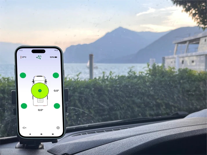 Dette digitale vateret er designet spesifikt for campingvogner og bobiler, hvor presis nivellering er avgjørende. Sensoren monteres permanent i kjøretøyet med fire monteringsskruer, slik at du får pålitelige målinger hver gang du ankommer campingplassen. Via Bluetooth sender sensoren data til din smartphone, hvor du kan velge mellom en generell app eller en skreddersydd app for bobiler.