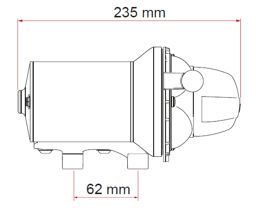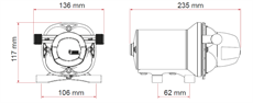 Med et maksimalt trykk på 2,2 bar og en kapasitet på 13 l/min er pumpen egnet for både mindre og mellomstore vannsystemer. Det lave strømforbruket på 2,4A ved 12 V sikrer økonomisk drift, mens de kompakte målene på 11,5 x 20,5 x 13,6 cm gjør installasjonen enkel.