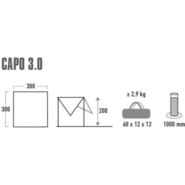Mål: L: 300 x B: 300 x H: 200 cm.