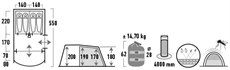 Utvendig mål: L: 450 x B: 260 x H: 180 cm.