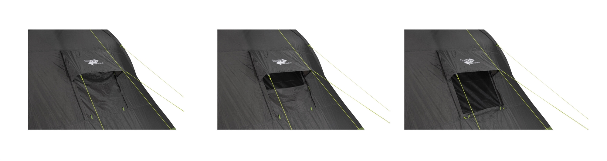 Myggnettvinduene holder plagsomme insekter ute av teltet og kan betjenes komfortabelt fra innsiden avhengig av klimaet.