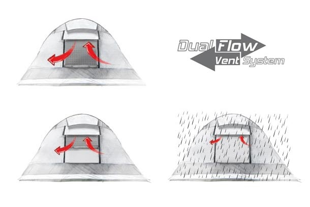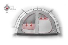 Det mørklagte innerteltet med 2 innganger er utstyrt med High Peak Vario Vent Control System.