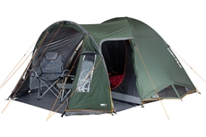 Det klassiske kuppelformede familieteltet har en romslig front med sidedør og