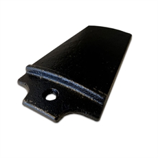 Rektangulær, flat gjenstand med tekstur, hull i den ene enden og hevet kant.