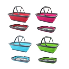 Sammenleggbar kurv med håndtak, lett å bære og plassbesparende.