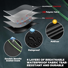 Trekktrekk laget av 4-lags, pustende og 100 % vanntett stoff, også strålingsbestandig. DCoveret er mer bruddsikker enn for eksempel nylon og lerret. Dekselet kan derfor brukes i svært vanskelige værforhold.