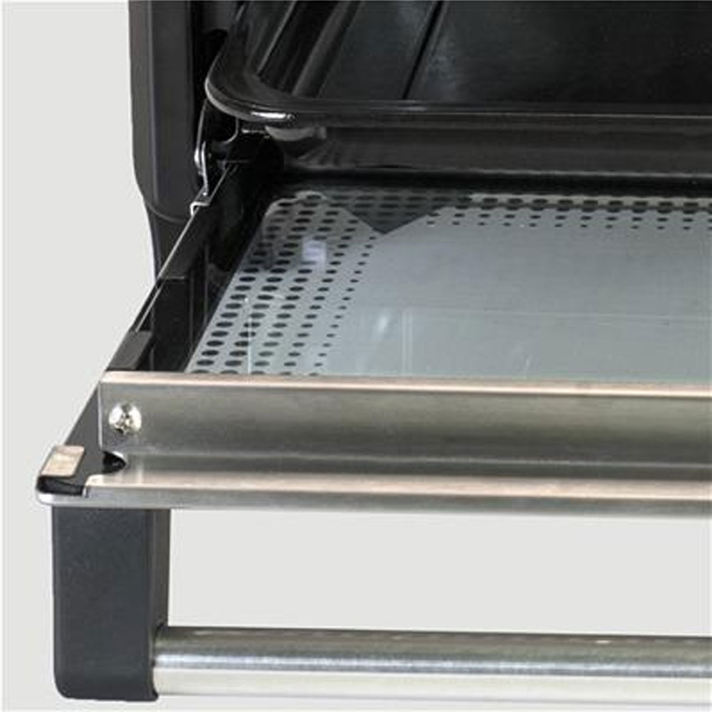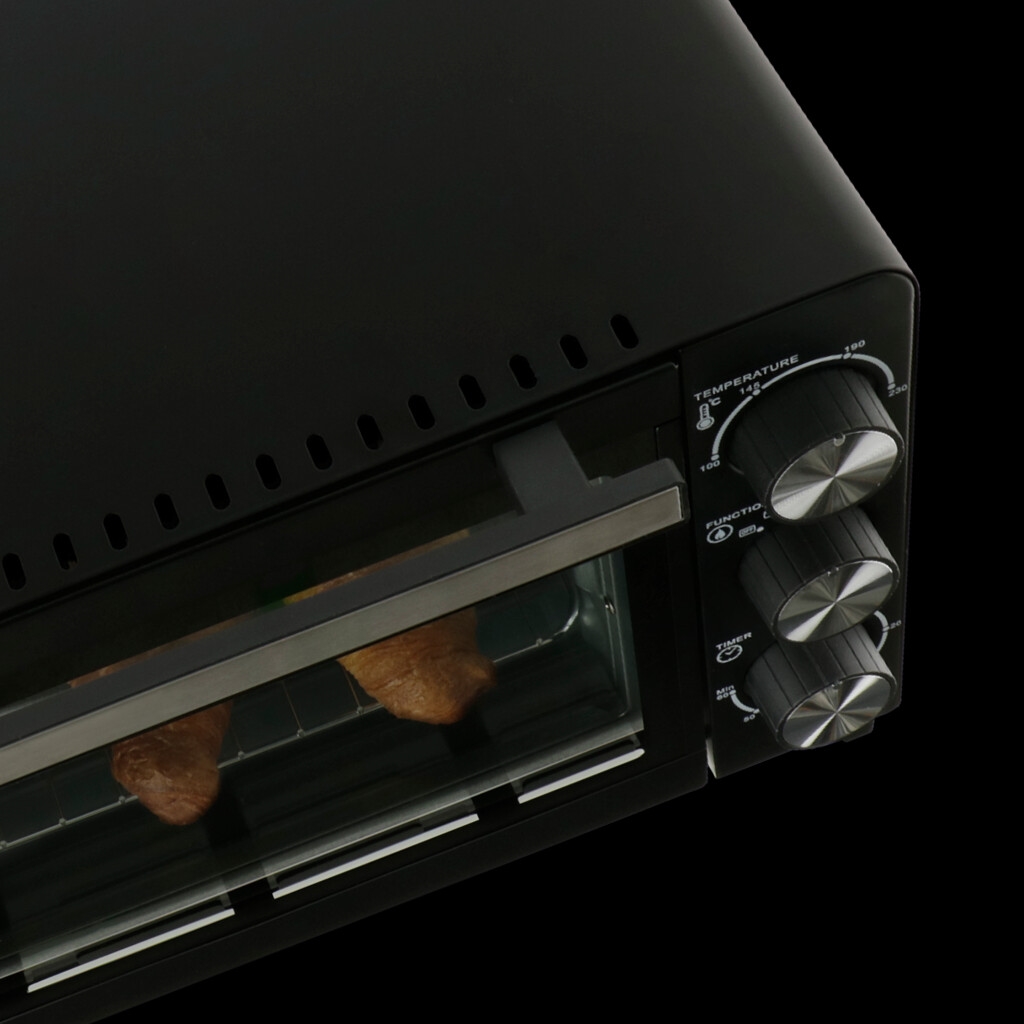 Ovnens mål på 43 x 34,5 x 28,5 cm gjør den enkel å plassere på kjøkkenbenken, mens vekten på 6,5 kg betyr at du kan flytte den mellom hovedboligen og fritidsboligen uten besvær. Den dobbeltrutete døren forhindrer varmetap og holder utsiden kjøligere å berøre. Overopphetningsbeskyttelsen sikrer trygg bruk, selv når du ikke holder konstant øye med ovnen.