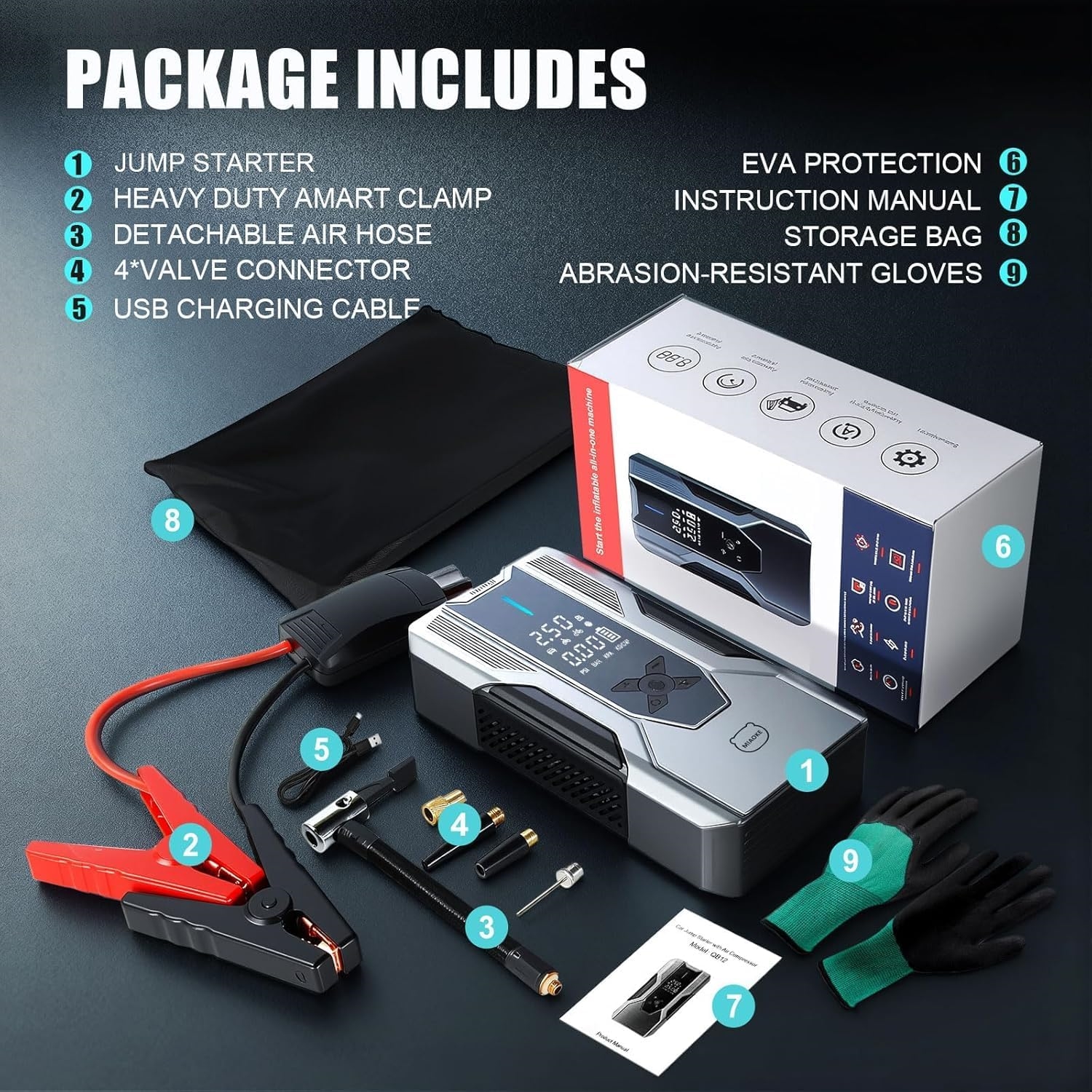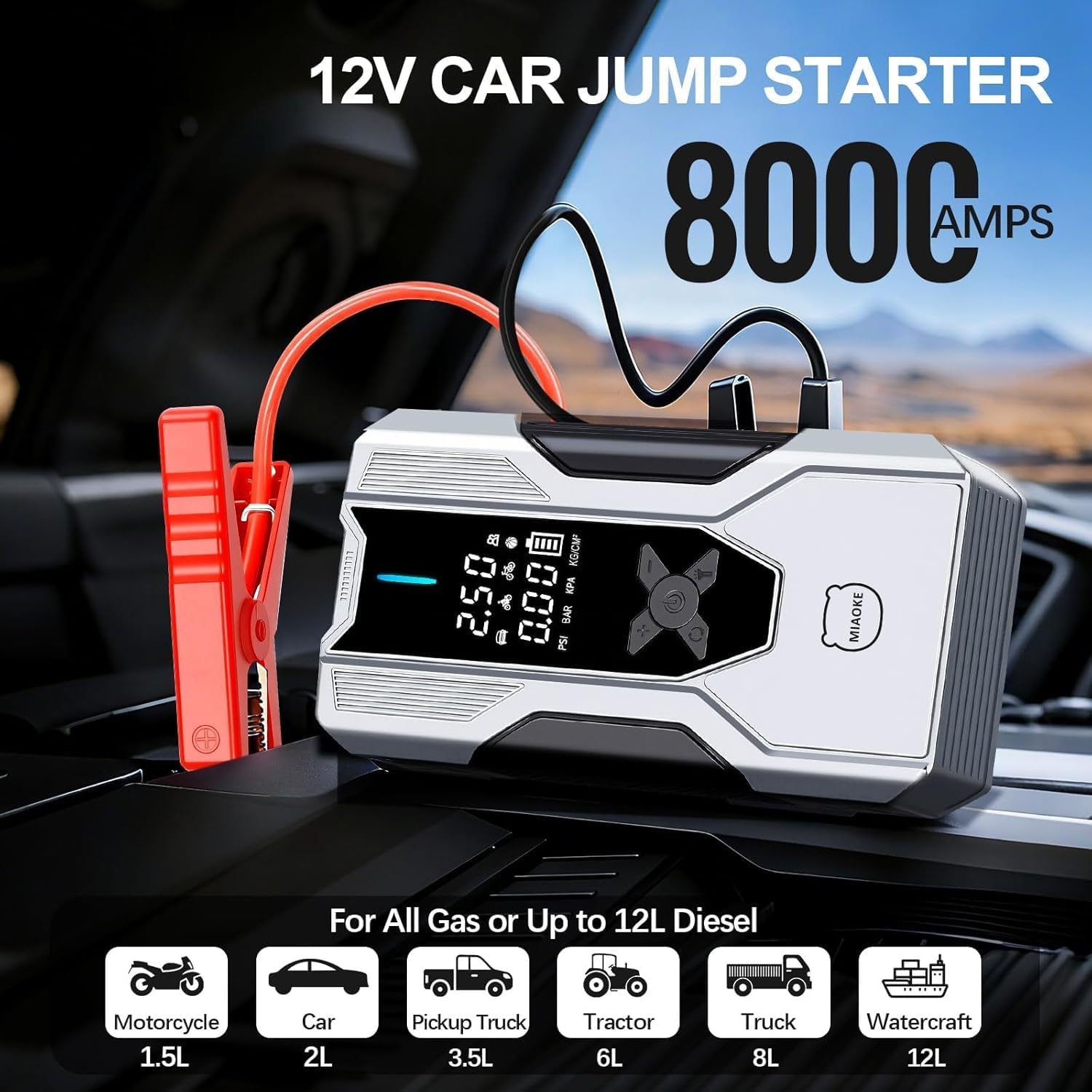 MIAOKE 8000A Jumpstarter, PowerBank og 150 PSI luftkompressor