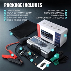 • Inkludert i pakken: jumpstarter, luftslange, ladekabel, oppbevaringspose