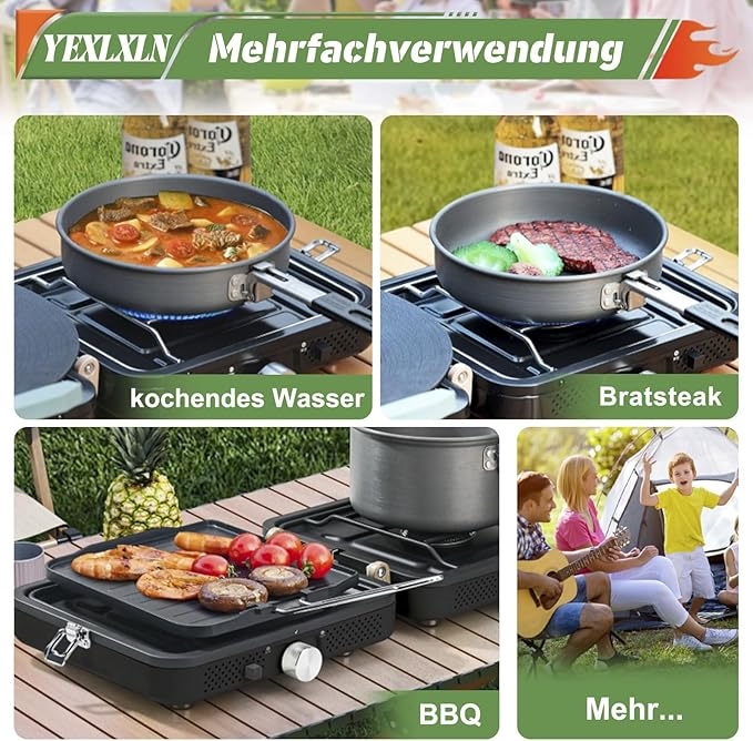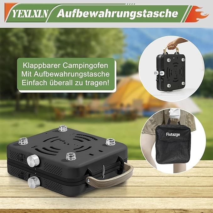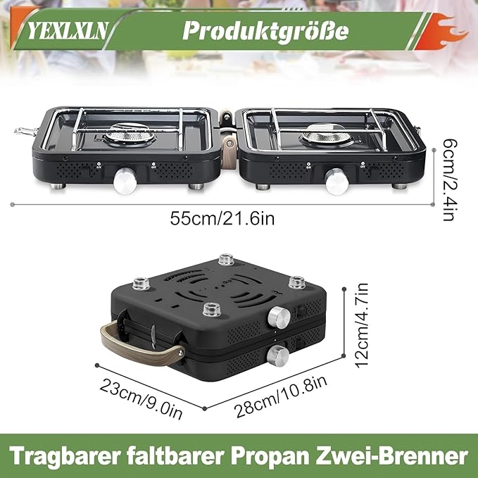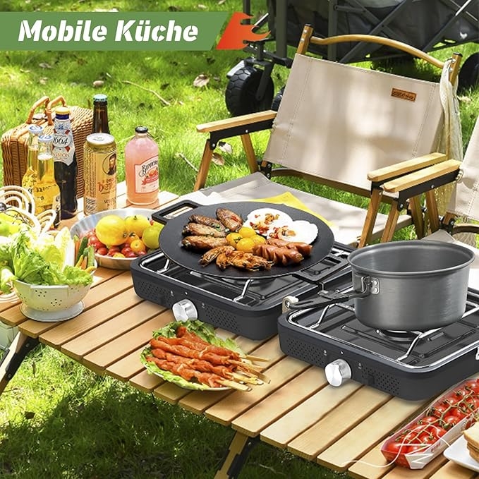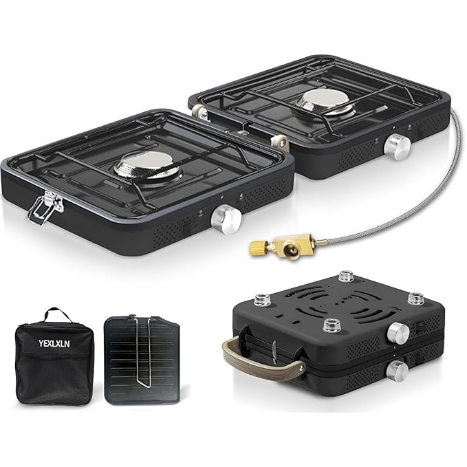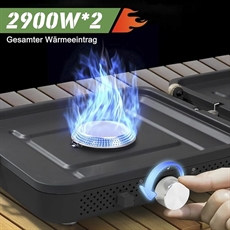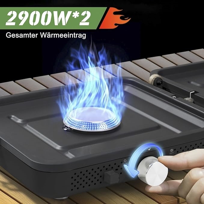 Dette gassbluss fra NCU har to justerbare brennere med en samlet effekt på 2 x 2900 W, som sikrer rask matlaging, selv i vindvær under campingturen. Det sammenleggbare design gjør det enkelt å bære siden det kun måler 26 x 23 x 12 cm når det er sammenfoldet. Hver brenner har uavhengig kontroll, så du kan tilberede flere retter samtidig med ulik varme.