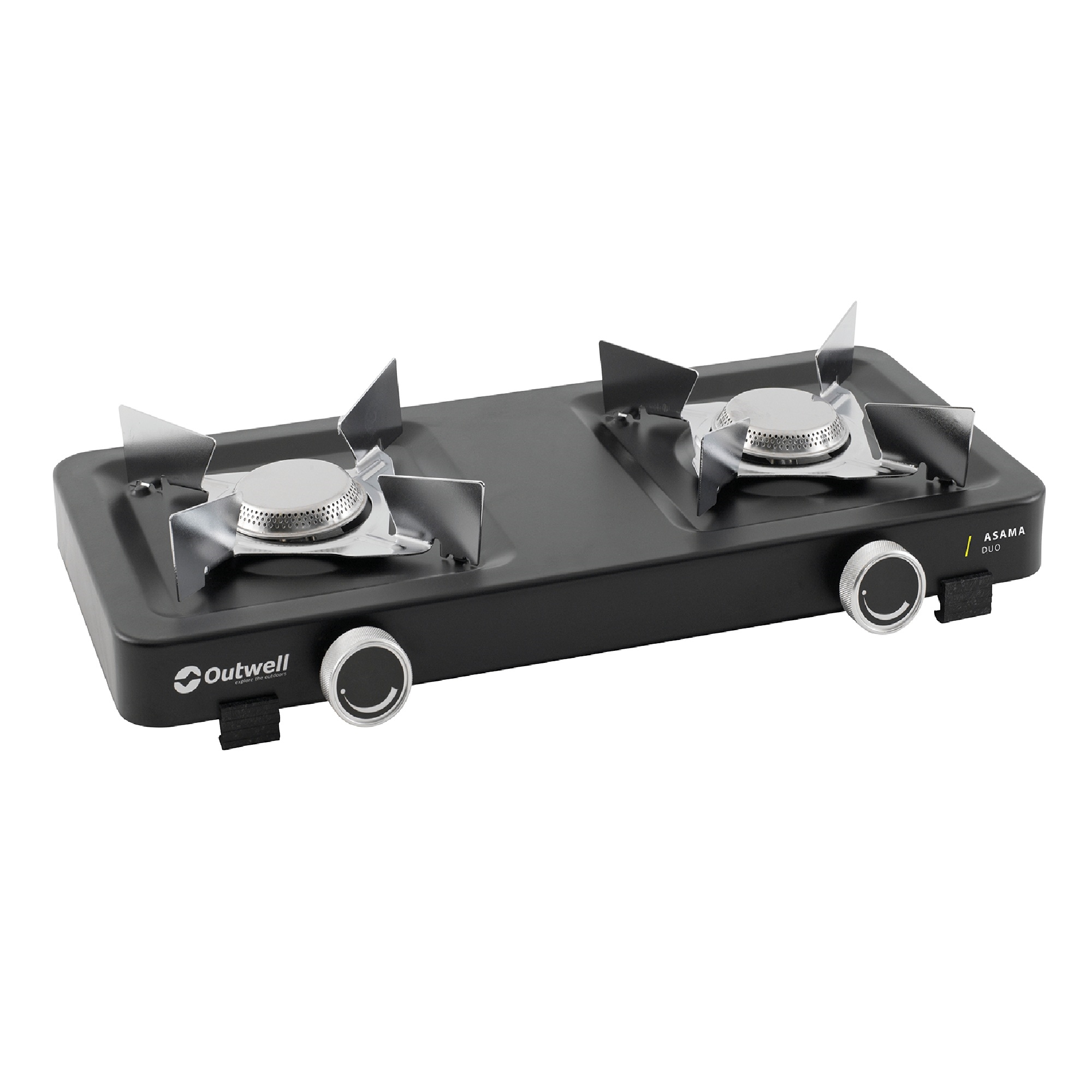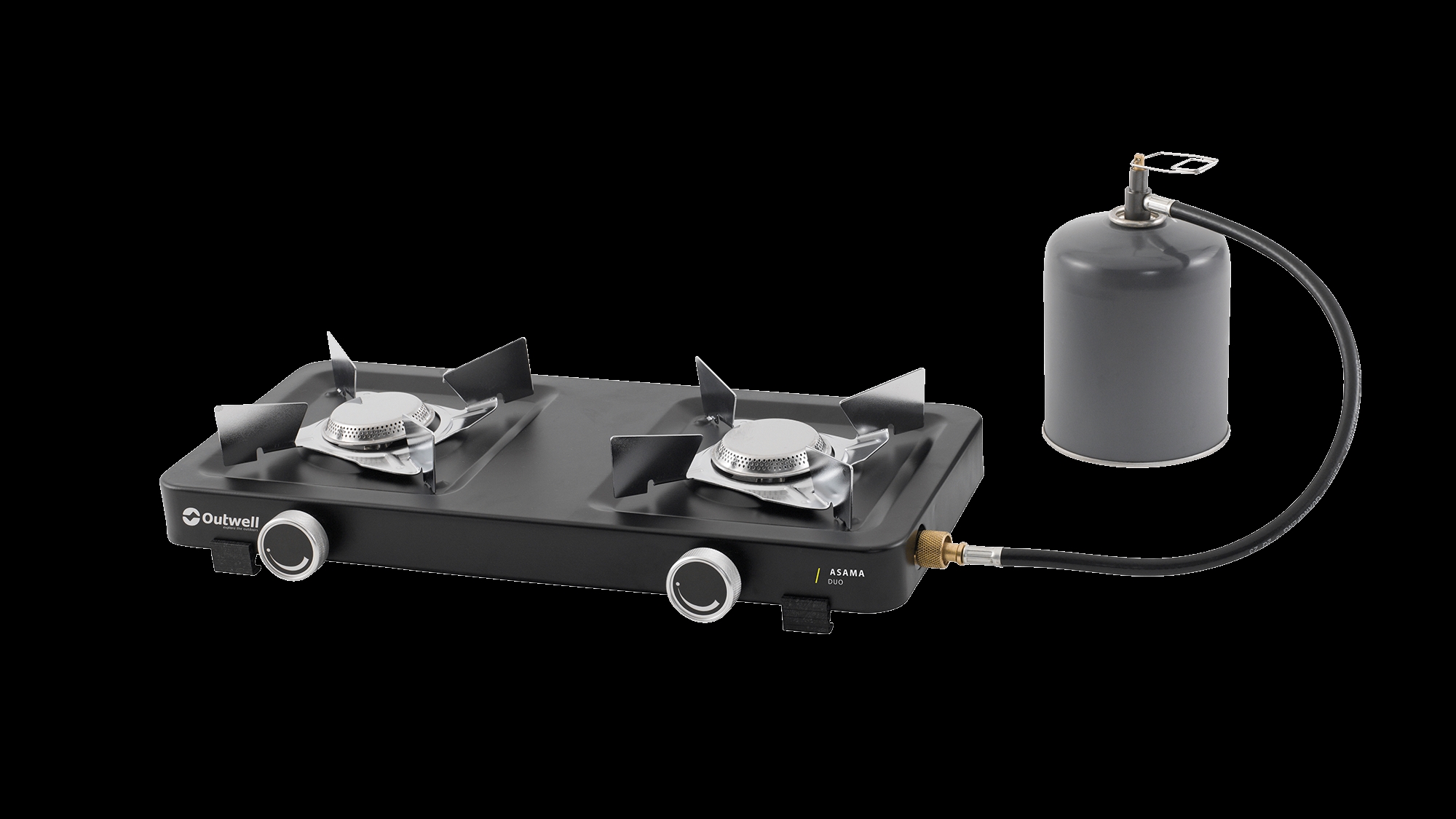 OUTWELL Asama Duo Gassbrenner med to separate brennere og en samlet effekt på 2 x 3000 W. Dette gir mulighet for å tilberede flere retter samtidig, noe som sparer tid på campingplassen. Brenneren leveres komplett med slange og regulator, så den er klar til bruk uten ekstra kjøp av tilbehør (bortsett fra gass selvfølgelig). Den lave profilen kombinert med brede føtter sikrer stabilitet under matlaging. Konstruksjonen i rustfritt stål og stål gir motstandsdyktighet mot værpåvirkninger gjennom mange sesonger. Dreieknappene er fremstilt med en flott holdbar sinklegering, hvilket muliggjør presis justering av varmen på hver brenner. Med en vekt på 1,3 kg og kompakte mål på 44,5 x 22,5 x 8 cm fyller den ikke unødvendig i bagasjen.