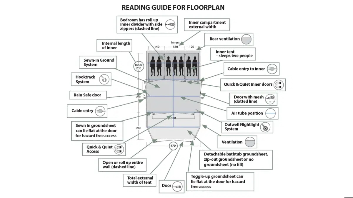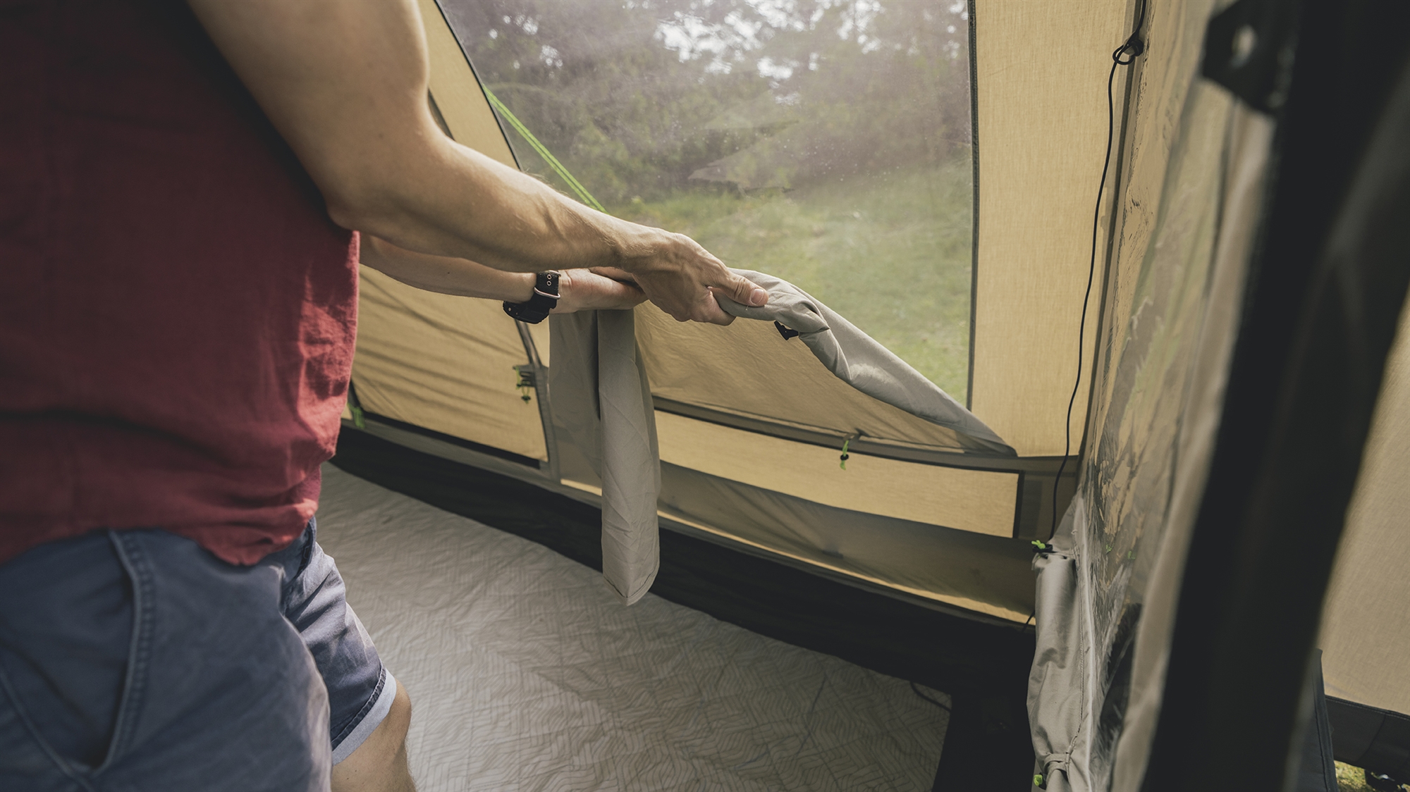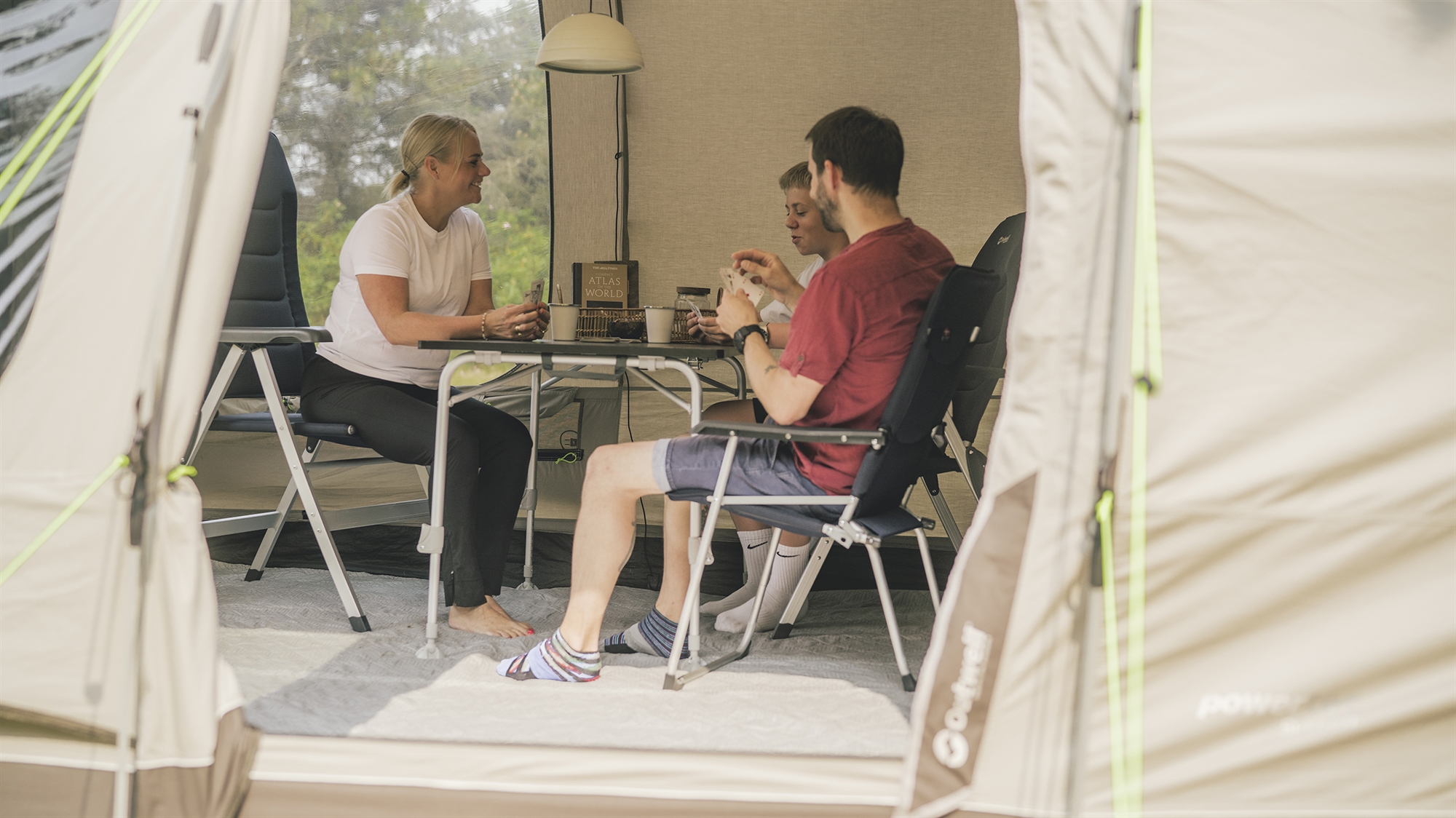 Fuktighet fra undergrunnen trenger ofte gjennom teltbunner og skaper ubehag. Den dobbeltbelagte polyetylenbunnen holder vannet ute, selv når teltet står på vått gress i flere dager. Kondens på innsiden av teltet oppstår ved temperaturendringer mellom dag og natt. Polycotton-materialet absorberer fuktigheten og reduserer dråpedannelse markant sammenlignet med syntetiske alternativer. Teltene har mange praktiske og gjennomtenkte funksjoner og bærer preg av Outwells mange års erfaring med teltproduksjon.