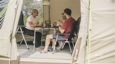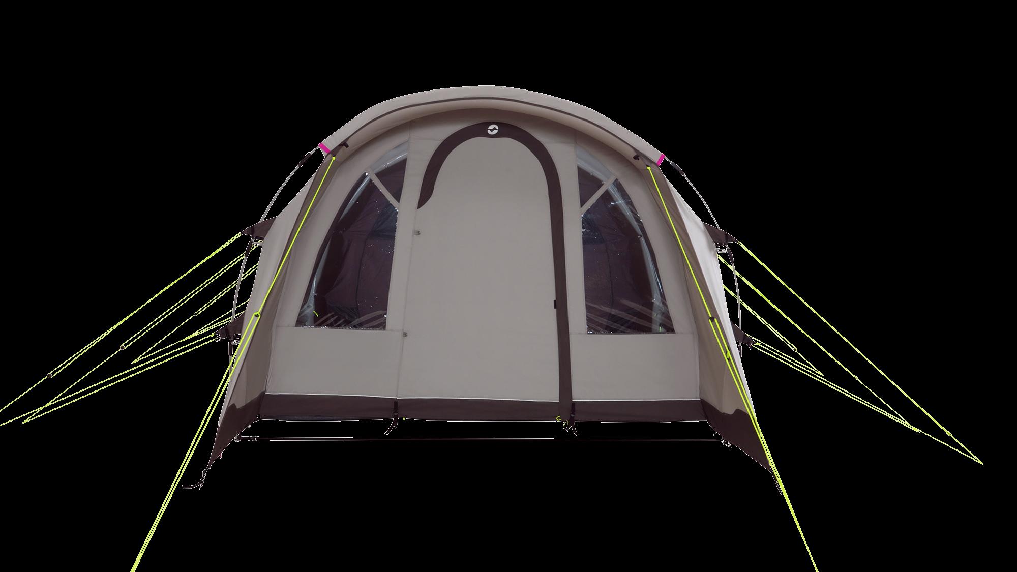 Ytterteltet består av Outtex Airtech med 65% polyester og 35% bomull. Denne materialblandingen gir bedre pusteevne enn ren polyester, noe som reduserer kondensdannelse ved lengre opphold. Innerteltet bruker samme polycotton-sammensetning for å skape et behagelig inneklima og kjøligere temperaturer når det er camping i sommervarmen. Materialet absorberer fuktighet fra luften og frigjør den gradvis, noe som forhindrer dråpedannelse på innsiden. Kombinasjonen av det pustende innerteltet og den vanntette polyetylenbunnen skaper en balanse mellom ventilasjon og beskyttelse. Yttertelt-taket i lyse, varme toner reflekterer sollys og skaper en lys atmosfære innvendig uten å kompromittere UV-beskyttelsen.