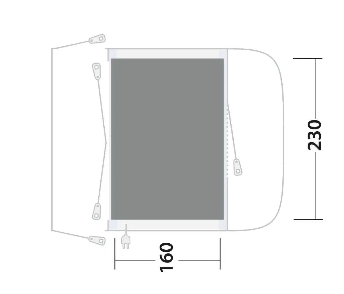 • Størrelse utfoldet: 160 x 230 cm