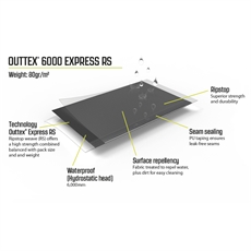 Forteltet veier 23,1 kg og måler 78 x 37 x 41 cm sammenfoldet. Luftør har gir god takhøyde og romfølelse med en taktilkoblingslengde på 250 cm. Frontveggen kan åpnes helt eller delvis med nettpanel bak, som gir fleksibilitet i forhold til ventilasjon og utsikt. Det høytytende Outtex 6000 Express RS-materialet med 6000 mm vannsøyletrykk sikrer deg mot regn og fukt. Den sydde bunnen holder insekter ute, mens UPF 30+ beskyttelsen verner mot solens stråler. HookTrack-systemet lar deg henge opp lys og utstyr opptil 1,5 kg, og de forhåndsmonterte lysende barduner gjør oppsettet enkelt. Forteltet har praktiske detaljer som kraftige, driftssikre glidelåser og en gulvduk med innebygd trekkavskjerming.