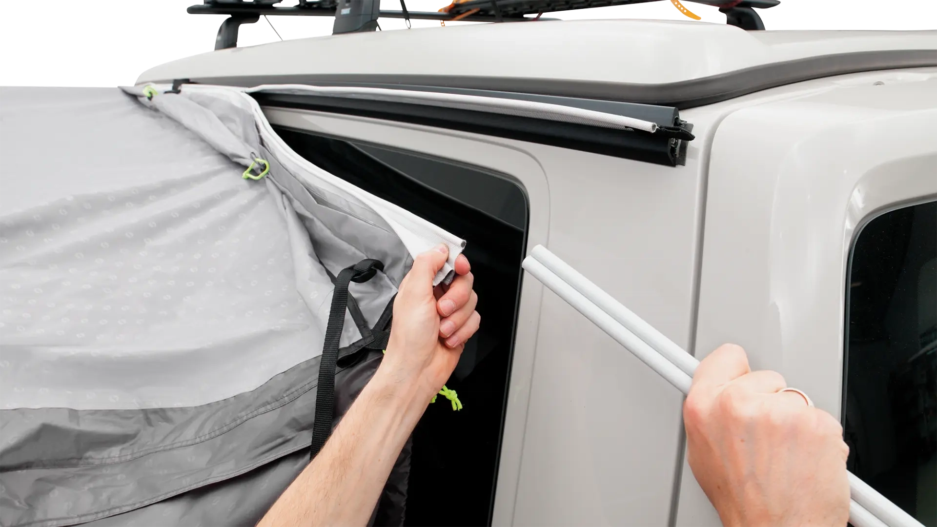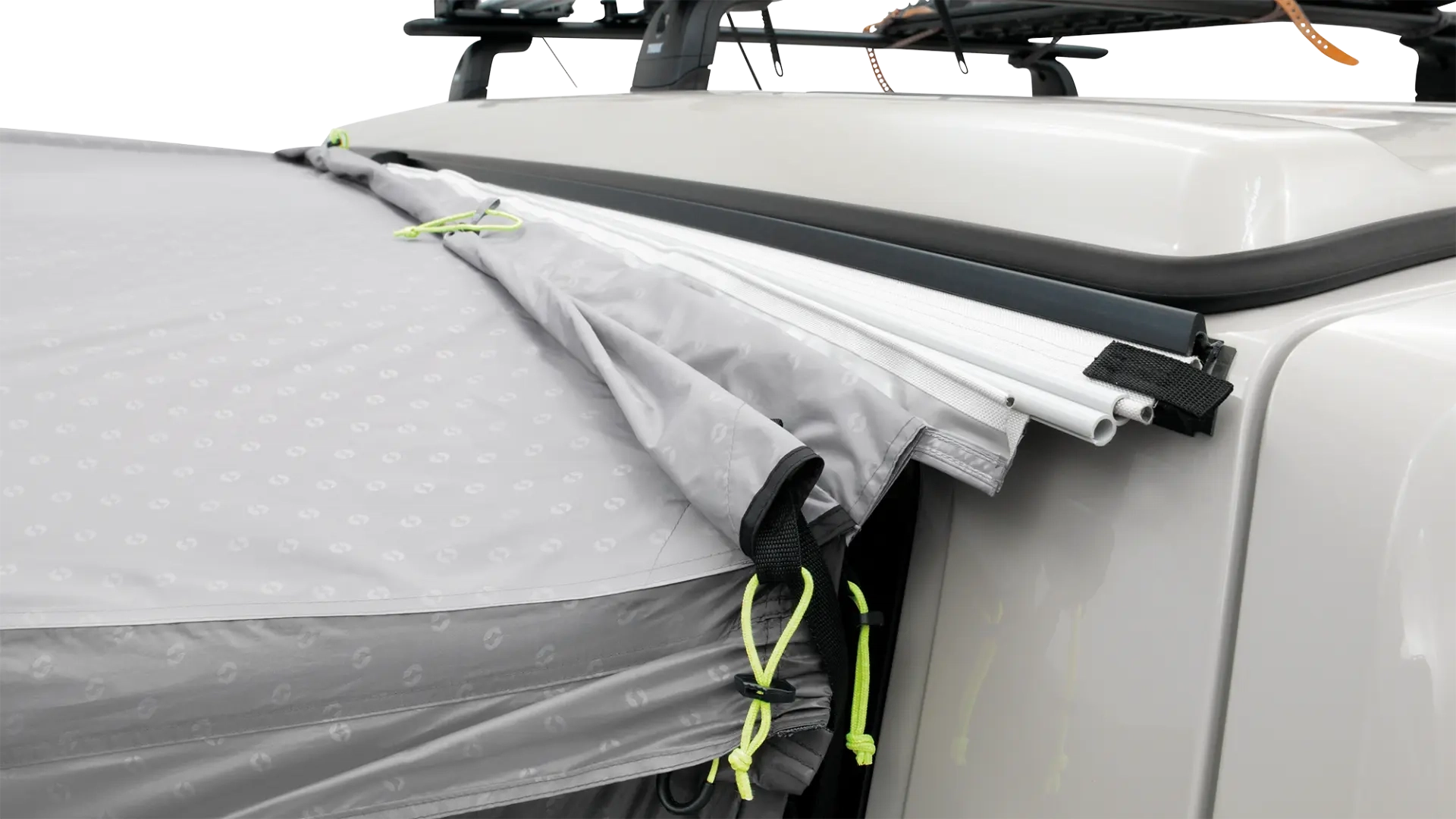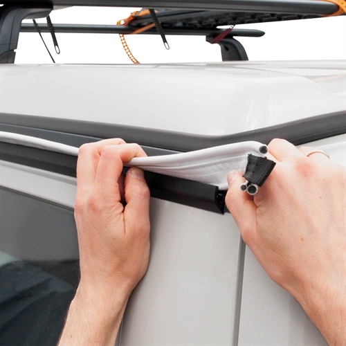 Hvis du bytter mellom forskjellige skinnesystemer på campingturene dine, gir denne doble teltadapteren fleksibilitet til å tilpasse teltet til ulike oppsett. Den doble Vulst-stripen på 270 cm og forbindelseskanaler på 90 cm sikrer flere festepunkter, som gir en stabil forbindelse mellom telt og kjøretøy under utfordrende værforhold.