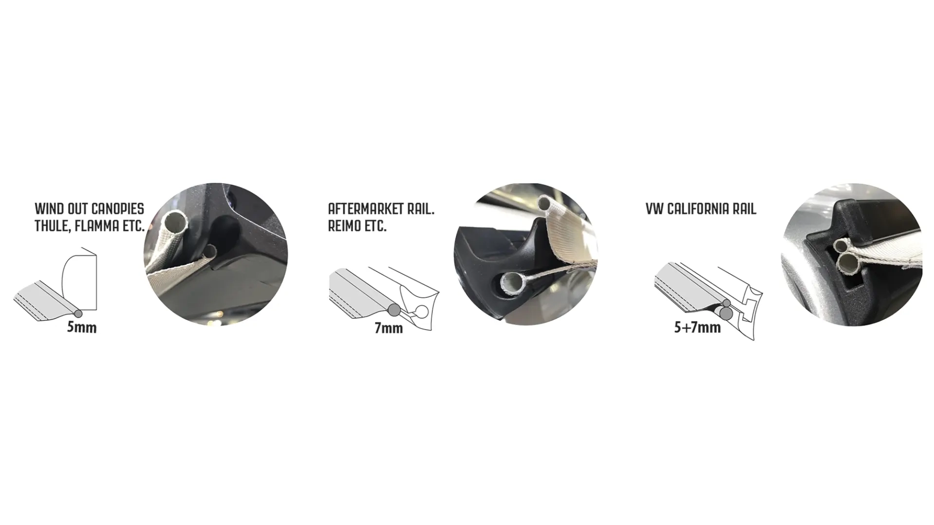 • Vulst størrelse: 7-7+5 mm for forskjellige skinner