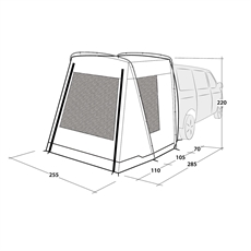 Dette frittstående bustelt gir deg ekstra plass og enkel montering til f.eks. din VW T5/T6/T6.1 eller MB W639/W447 eller lignende. Med en vannsøyletrykk på 3.000 mm er det velegnet for lengre opphold.