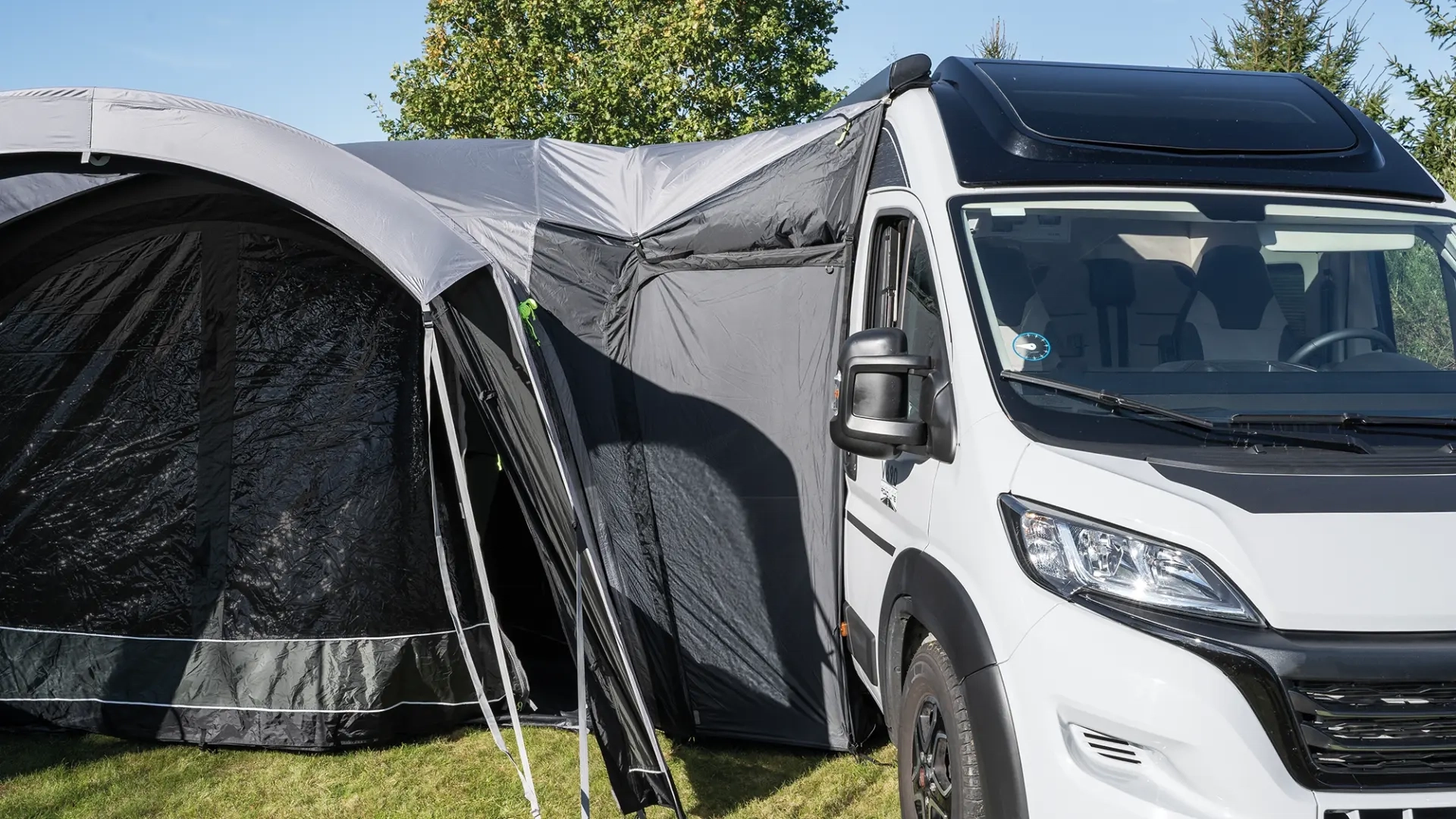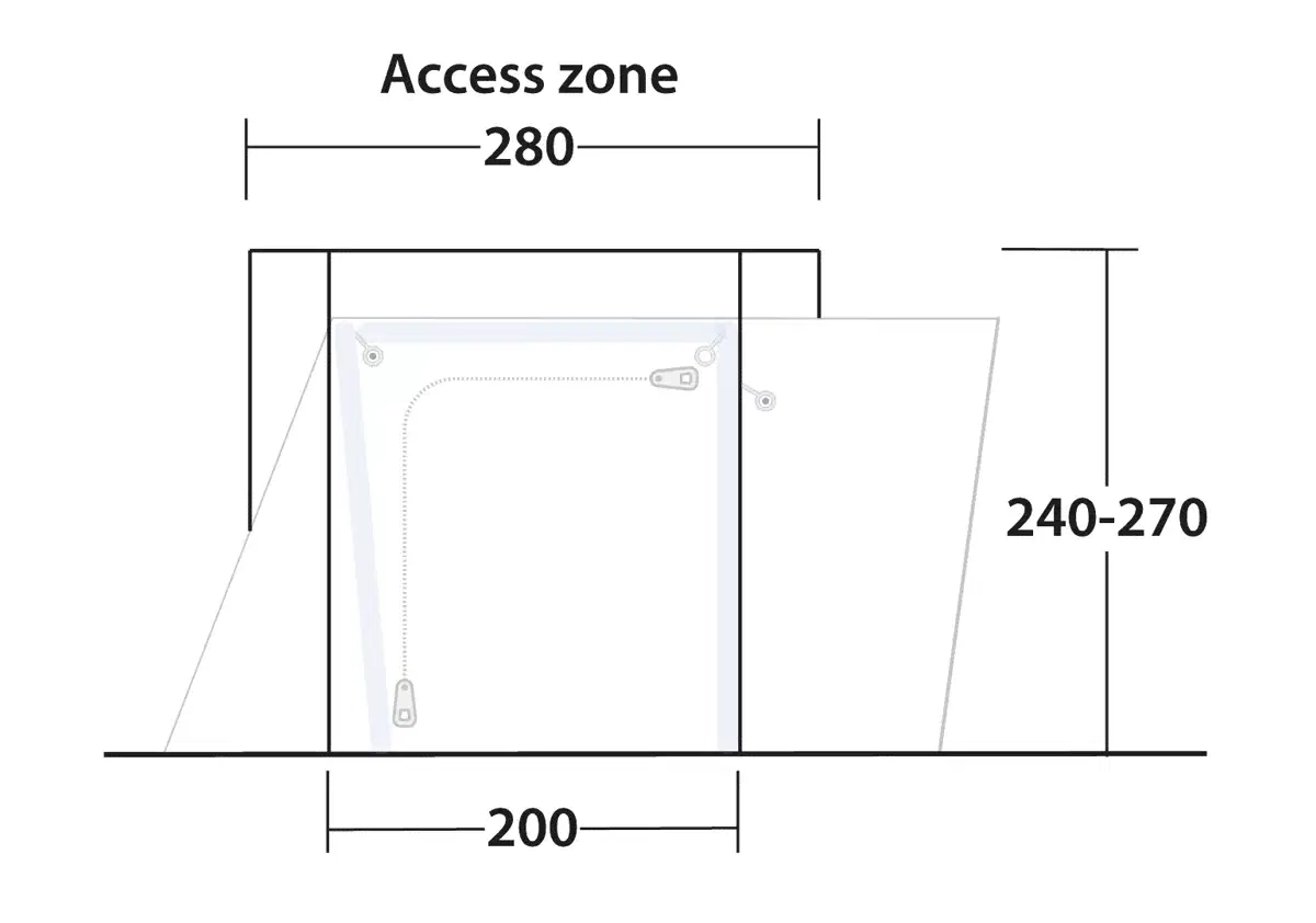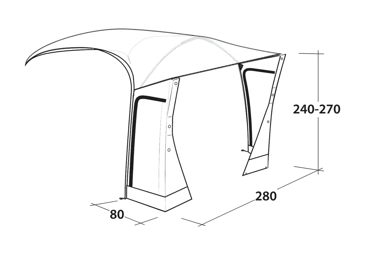 Dette drive-away fortelt er utviklet for langtids camping i kystnære områder. Den flyttbare frontdøren med insektnett og fire glidelås gir deg full kontroll over ventilasjon og tilgang. Den store baldakinen skaper verdifullt ekstra overbygd uteområde, som du kan bruke både til oppbevaring og opphold. Power Air System med apex-rør sikrer en enkel oppsett og gjør teltet stabilt i ulike værforhold. To store sidedører med insektnett gir god ventilasjon, mens HookTrack-systemet lar deg henge opp lys og utstyr på opptil 1,5 kg. Med en høy vannsøyle på 6.000 mm og UPF 30+ UV-beskyttelse holder teltet deg tørr selv i kraftig regnvær og beskyttet mot solen. Outtex® 6000 Express RS polyester materialet og den dobbelbelagte vanntette polyetylenbunnen gjør teltet holdbart. Tilkoblingshøyden på 175-200 cm passer til de fleste campingvogner, og med en vekt på 30,6 kg og pakkemål på 79 x 44 x 42 cm er teltet lett å transportere.