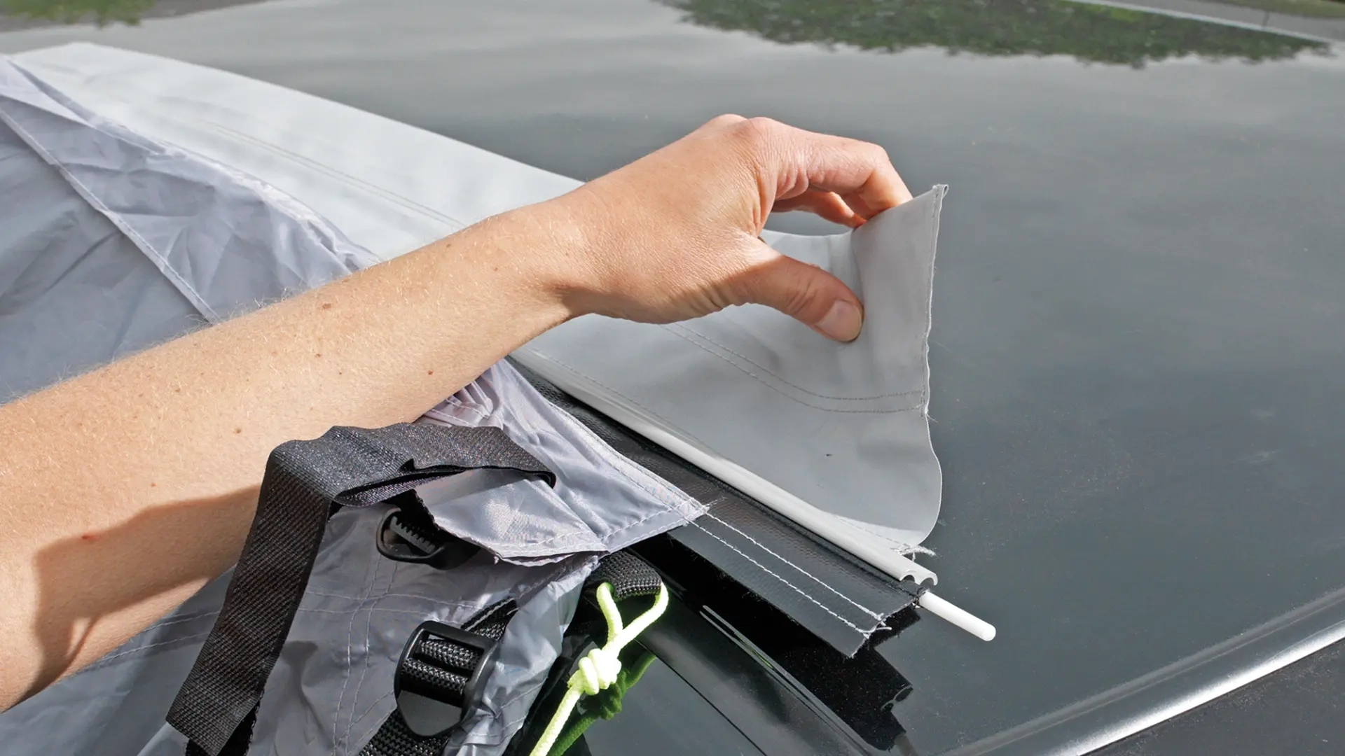 Hvis du planlegger familiecamping eller festivalsturer, forbinder denne magnetadapter ditt touringtelt sikkert til bilen. Med en taktilkoblingslengde på 260 cm passer den til de fleste biler og telt, slik at du sikrer riktig kompatibilitet fra starten. Magnetadapteren festes enkelt til bilen med en kraftig magnet, mens barduner over bilens tak sikrer en stabil posisjon, selv i vindfullt vær. Adapteren glir lett på teltet, noe som gjør oppsettet raskt og problemfritt.