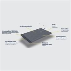 Teltet er konstruert med Outtex® 4000 Select polyester og dobbeltbelagt vanntett polyetylen i bunnen. Den pustende polyesteren i innerteltet sikrer god ventilasjon, mens det PU-belagte taffetapolyesteren i sovekabinen gir ekstra beskyttelse. Disse materialene bidrar til teltets allsidighet under ulike værforhold. Den blå fargen gir teltet et diskret og elegant utseende som passer godt inn i de naturlige omgivelsene.