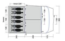 • Meshlommer i innerteltene sikrer sikker oppbevaring av småting