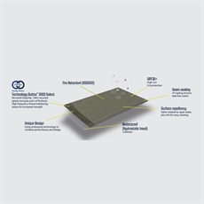 Outtex®-materialet har egenskaper som bidrar til beskyttelse mot regn og UV-stråler. Det store nettvinduet med vanntett gardin gir mulighet for å regulere ventilasjon og privatliv etter behov. Døren kan brukes som solseil, noe som tilfører ytterligere fleksibilitet til teltet under forskjellige værforhold. Merk dog at stenger til denne funksjonen ikke medfølger.
