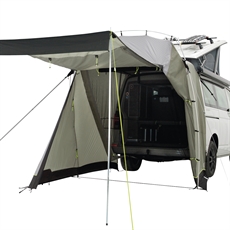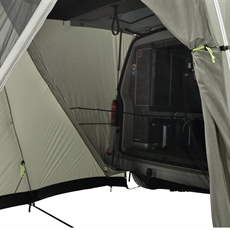 Dette bustelt er designet til f.eks. VW T5/T6/T6.1, MB W639/W447 og lignende campingkjøretøy. Med Vehicle Attachment System monteres teltet enkelt på bakluken uten å blokkere sidedørene. Den innovative innvendige myggnettingveggen gir mulighet for å sove med åpen bakluke, mens insektene holdes ute. Outtex® 3000 Select CARE-polyester med UPF 30+ UV-beskyttelse og 3000 mm vannsøyletrykk bidrar til beskyttelse mot forskjellige værforhold. Både ytterseil og mesh er laget av 100% polyester.
