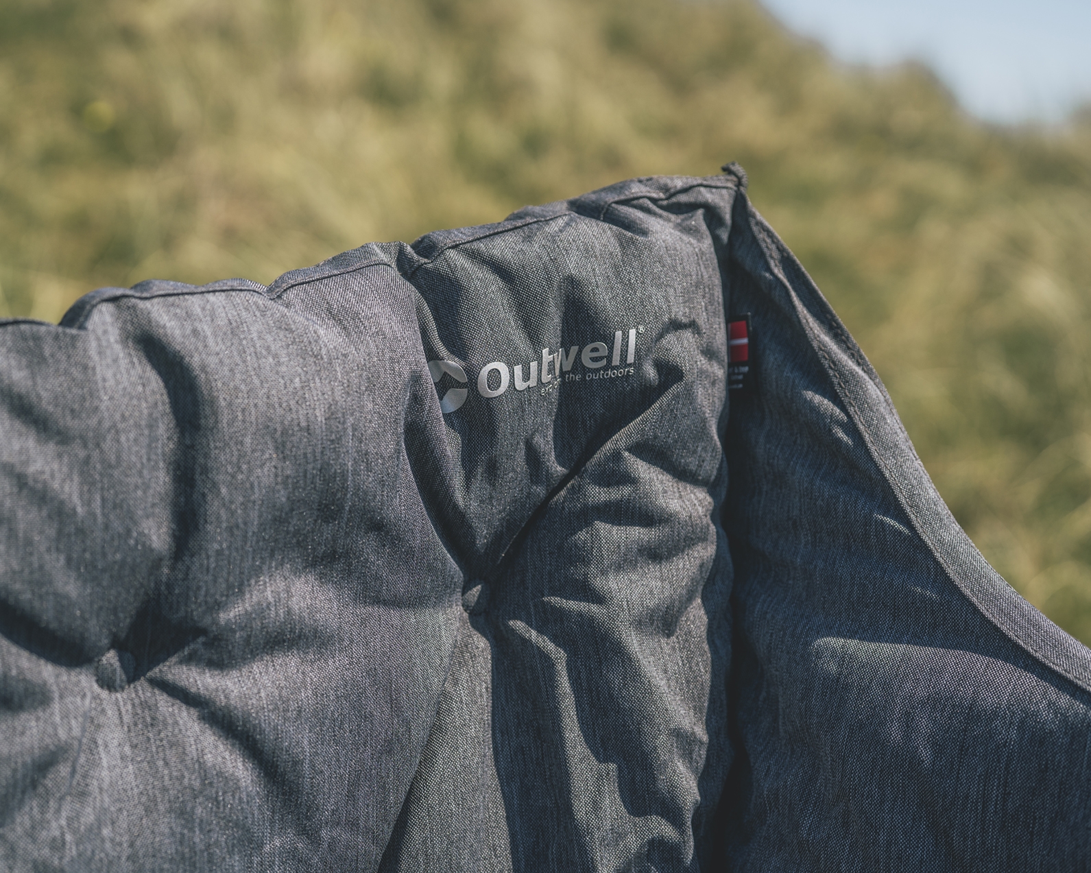 Outwell leverer campingutstyr som kombinerer funksjonalitet med gjennomtenkt design. Sardis Lake Relax Sofa er designet for to personer, slik at du kan sitte sammen med en partner i parken eller på campingplassen. De overdimensjonerte føttene gir stabilitet, selv på ujevnt underlag, mens de praktiske lommene holder telefon og bok innen rekkevidde.
