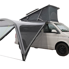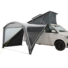 Denne universelle Outwell Touring Shelter er en luft solseil som gir deg fleksibel beskyttelse mot sol og regn med en vanntetthet på 4.000 mm og UV-beskyttelse (UPF 30+). Luftsystemet med enkeltpunktoppblåsing gjør oppsettet raskt og enkelt, selv når du er alene. Den spesielt formede luftslangen sikrer god ståhøyde, og sidene kan rulles opp på varme dager. Med en vekt på 6,4 kg og pakkemål på 62x20x20 cm er det enkelt å transportere. Det er velegnet for bobiler, varebiler og campingvogner.