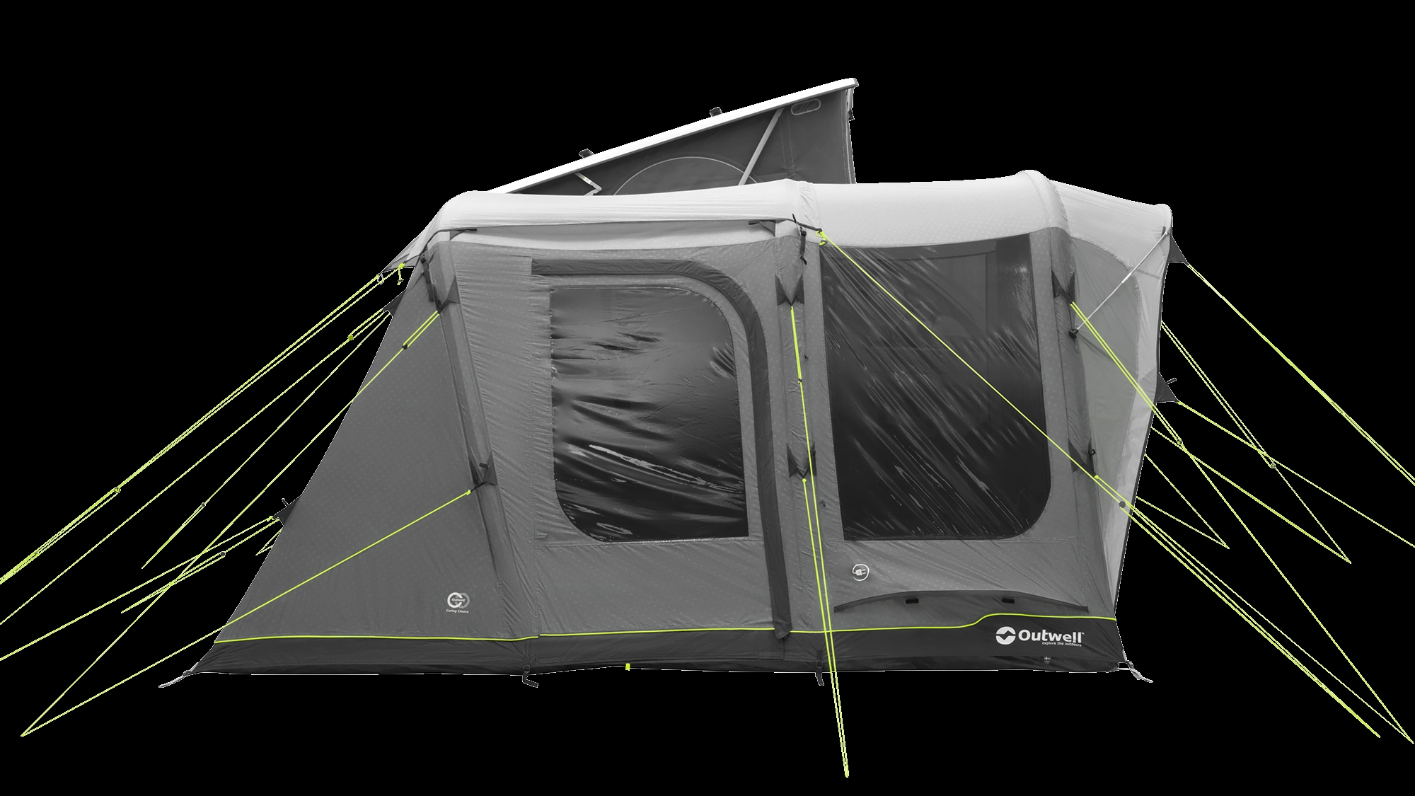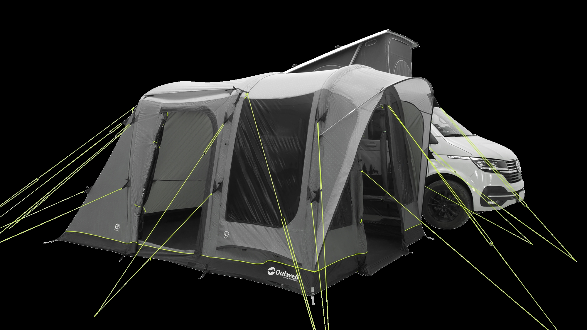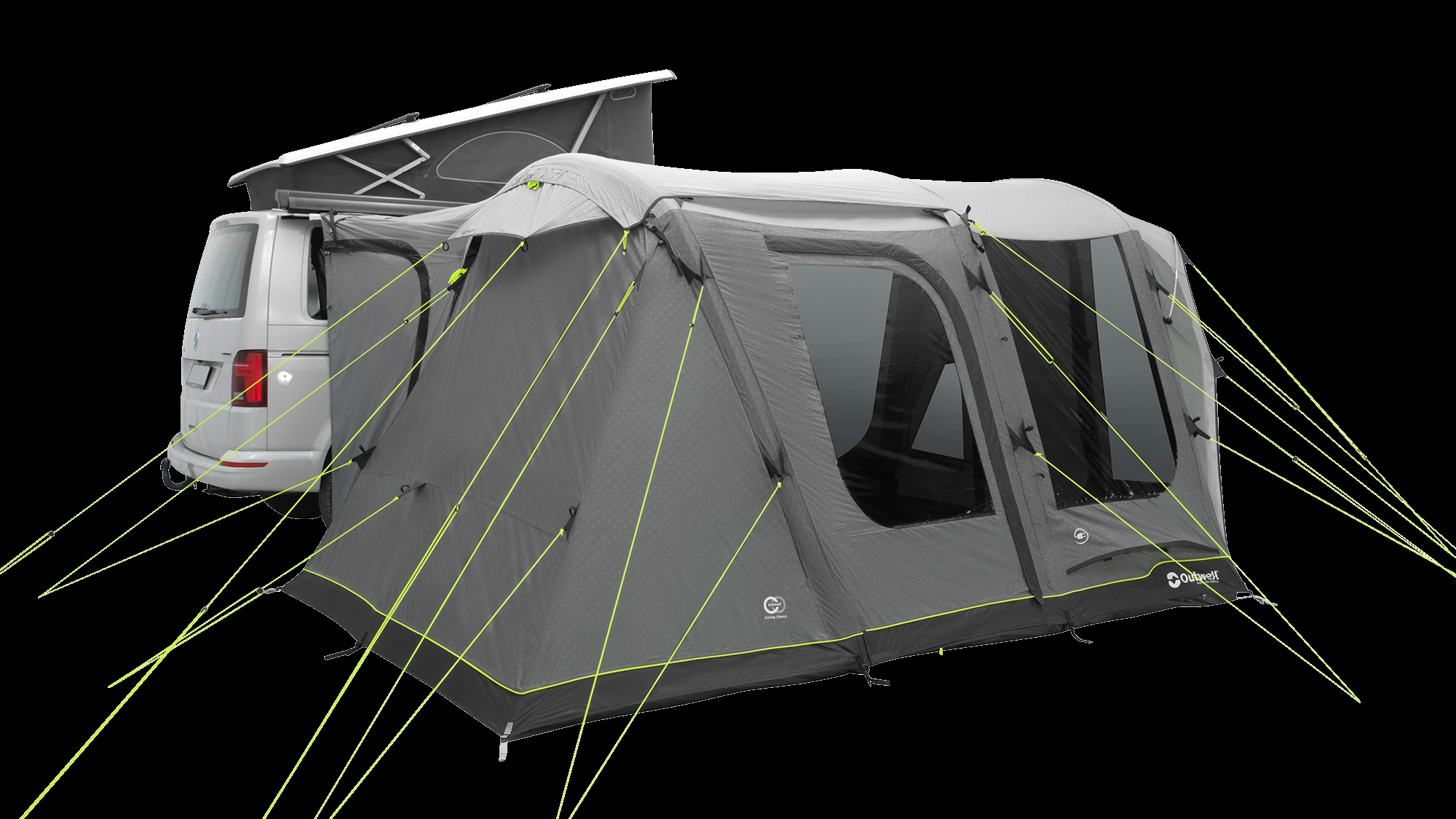 Outwell produserer campingutstyr med fokus på funksjonalitet og holdbarhet til utendørs bruk. Wolfburg Air Drive-Away Bustelt er utviklet for bobileiere som ønsker fleksibilitet mellom fast basecamp og mobilitet. Materialene er valgt for å tåle gjentatt bruk gjennom flere campingsesonger under varierende værforhold.