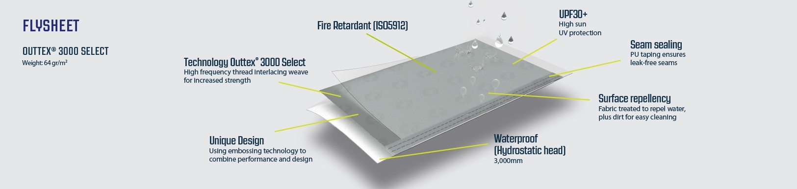 - Yttertelt materiale: Outtex 3000 Select polyester med vannavvisning