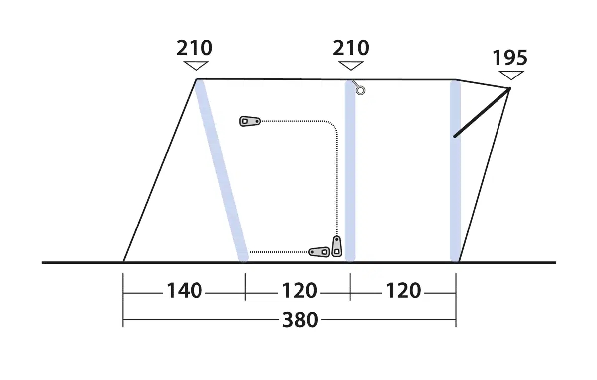 Rigid Air System består av ferdigformede luftrør, som erstatter tradisjonelle stenger og skaper god takhøyde gjennom hele oppholdsrommet. Systemet pumpes opp med den medfølgende pumpen, noe som eliminerer behovet for å samle og justere stangdeler. Luftrørene fordeler belastningen jevnt over teltets konstruksjon, noe som gir stabilitet ved vindpåvirkning. Oppsettet foregår ved å reise ytterteltet først ved å pumpe opp til korrekt trykk. Duratec glassfiberstenger på 8,5 mm og 9,5 mm supplerer luftsystemet og holder den vindbeskyttende baldakinen stabilitet. Konstruksjonen gir en romslighet som gjør det praktisk å oppholde seg i teltet ved dårlig vær, mens den vertikale frontveggen med baldakin skaper en overbygd overgangssone ved inngangen. Soveseksjon kan kjøpes for optimal utnyttelse av plassen når dere er flere med på tur.